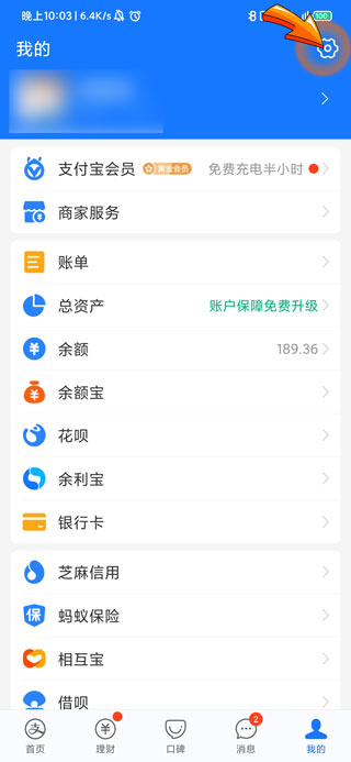 2、然后点击我的页面右上角的齿轮“设置”图标。
