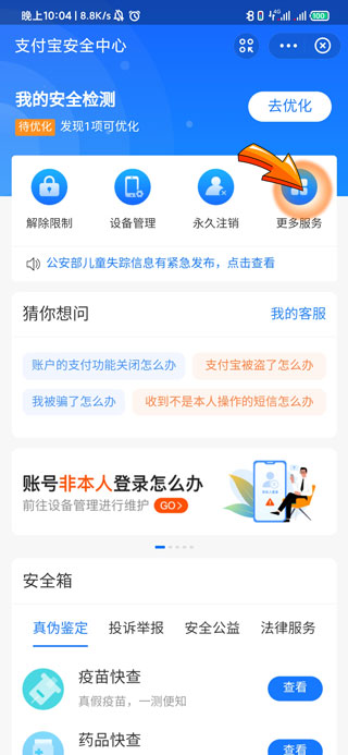 支付宝设置限额支付需要打开支付宝APP,点击页面右下角的“我的”图标,然后点击我的页面右上角的“设置”图标,再点击“账户与安全”,之后点击“安全中心”,在安全中心页面中点击“更多服务”,最后点击“数字证书”选项即可。