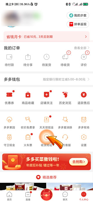 1、拼多多修改地址首先需要打开拼多多APP,点击右下角的“个人中心”图标。