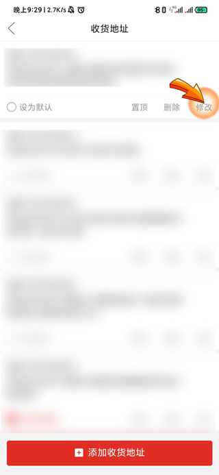3、选择需要修改的地址,点击其右下方的“修改”选项即可进行修改。