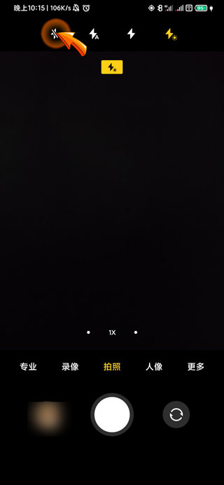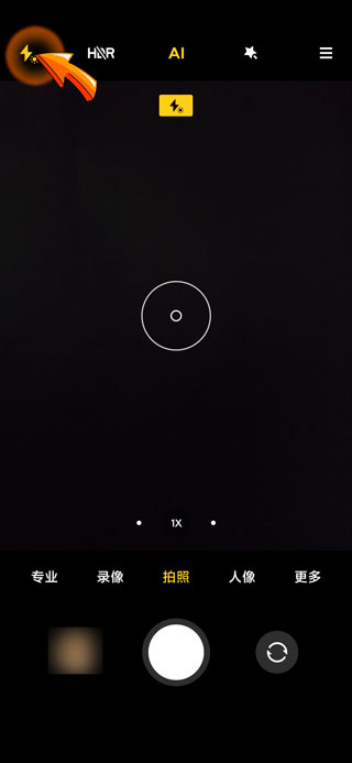 2、进入相机页面后,点击相机页面左上角黄色的“闪电”图标。