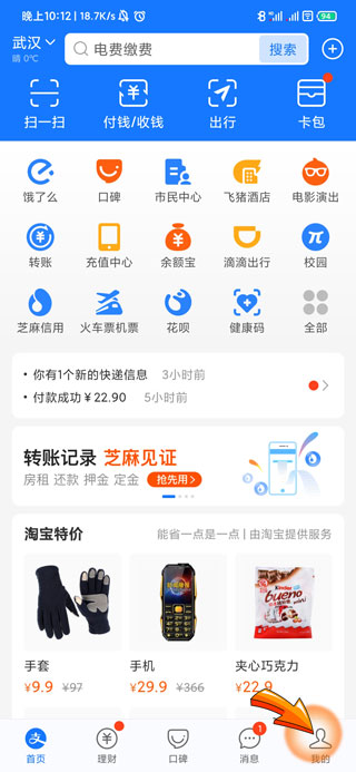 1、花呗开通150以上付款需要打开支付宝APP,点击页面右下角的“我的”图标。
