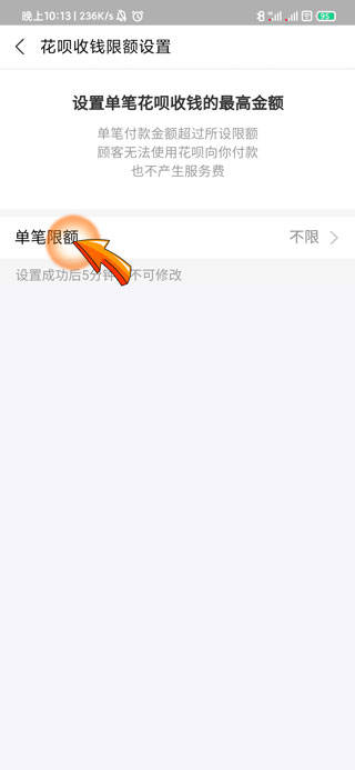 5、进入花呗收钱页面后,点击“设置花呗收钱限额”选项。
