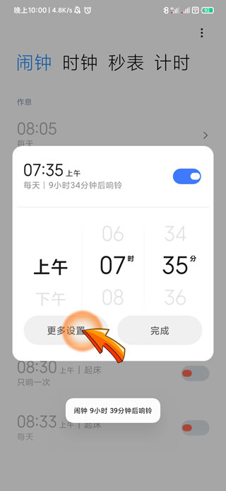 2、进入闹钟页面后,点击需要设置的“时间”。