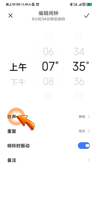4、然后点击编辑闹钟页面中部的“铃声”选项。
