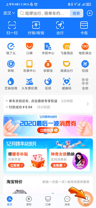 1、支付宝关闭花呗首先需要打开支付宝APP,点击首页右下角的“我的”图标。