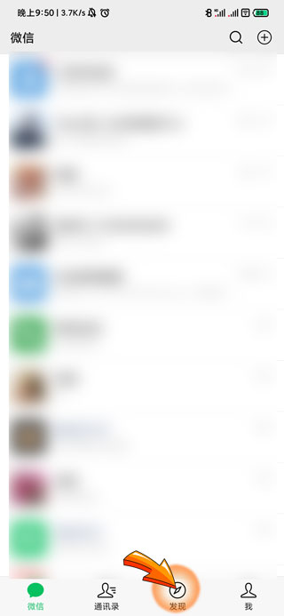 1、微信朋友圈点赞首先需要打开微信APP,点击首页右下方的“发现”图标。