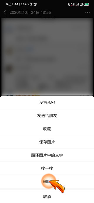 4、再点击朋友圈中需要删除的“朋友圈”内容。