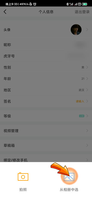 5、或者点击“头像”选项,然后选择弹出窗口中的修改方式,例如点击“从相册中选”图标后进行修改。