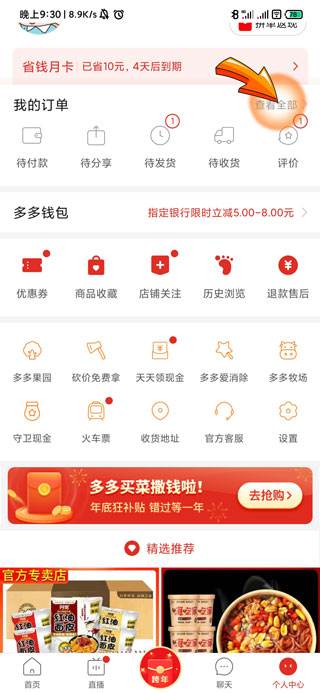 2、进入个人中心页面后,点击我的订单右侧的“查看全部”选项。