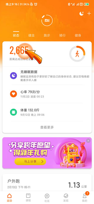 小米运动app无法修改步数,查看小米运动中的步数可以打开小米运动app,然后点击首页上方的“步数”计数,即可查看今日步数的详细记录,同时可以下滑查看一个月内的步数统计。