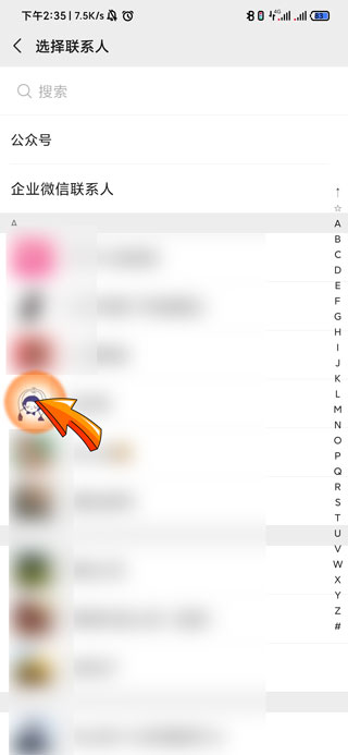 5、最后在联系人界面中找到并点击被推送人的“头像”图标即可。