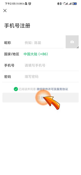 拥有两个微信号需要使用另外一个手机号进行注册,首先点击打开手机桌面上的“微信”图标,然后点击页面右下角的“注册”选项,填写完注册相关信息后,即可点击页面下方的“注册”选项。