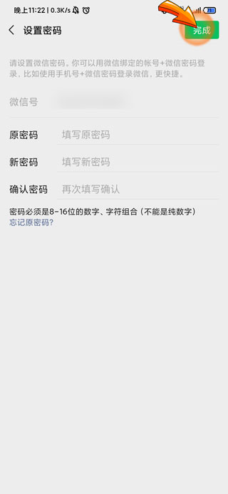 5、根据步骤填写完密码后,点击右上角的“完成”选项即可。