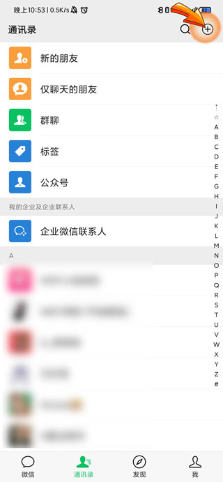 1、微信号添加朋友需要打开微信APP,点击页面右上角的“加号”图标。