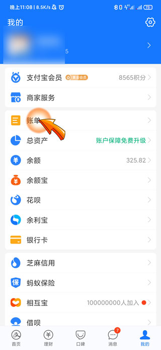 2、然后点击我的页面中的“账单”选项。