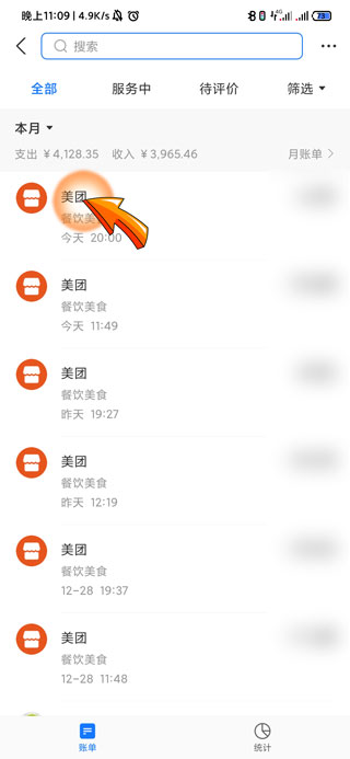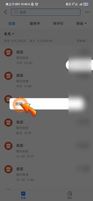 3、进入账单页面后,找到并长按需要删除的订单。