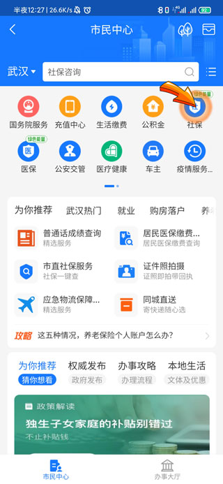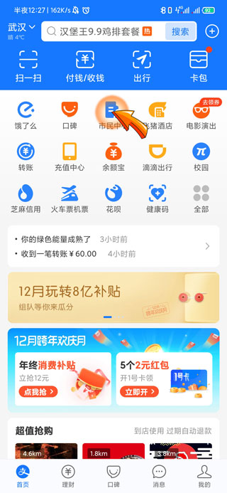 1、支付宝医保缴费首先需要打开支付宝APP,点击页面上方的“市民中心”选项。
