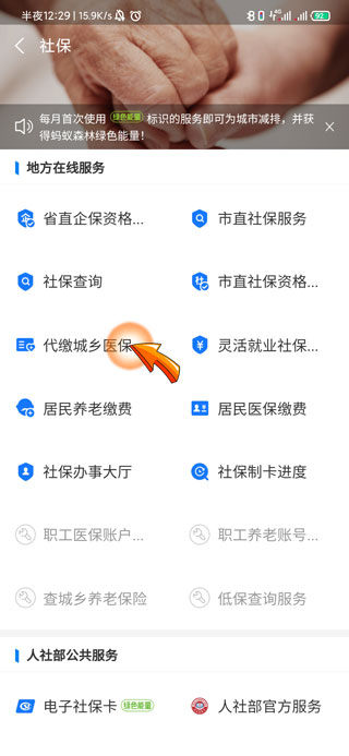 3、进入社保页面后,点击“代缴城乡医保”选项。