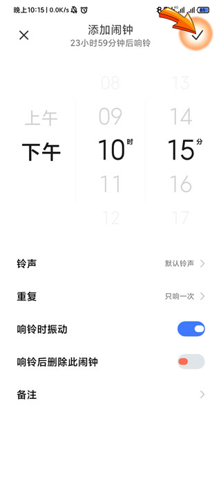 4、最后更改好闹钟设置后,点击页面右上角的“√”状图标即可。