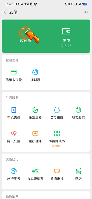 3、最后点击“收付款”图标,进入后选择“收款码”即可。