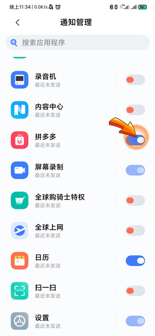 4、进入通知管理页面后找到“拼多多”图标,点击关闭右侧的开关选项即可。