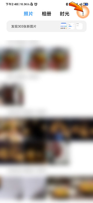 2、进入相册页面后,点击页面右上角的“三点”符号。