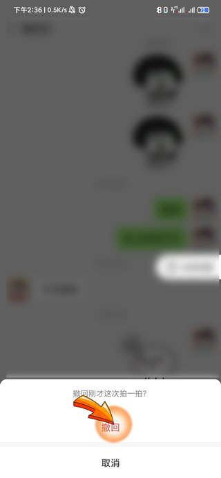 3、此时页面会弹出一个窗口,点击窗口中的“撤回”选项即可撤回拍一拍。