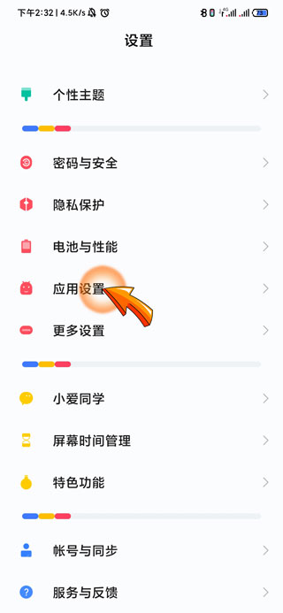 2、然后在设置页面中找到并点击“应用设置”选项。