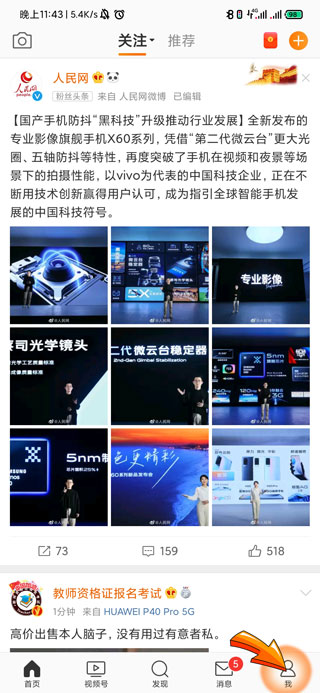 1、查看微博账号首先需要打开微博APP,点击首页右下角的“我”的图标。