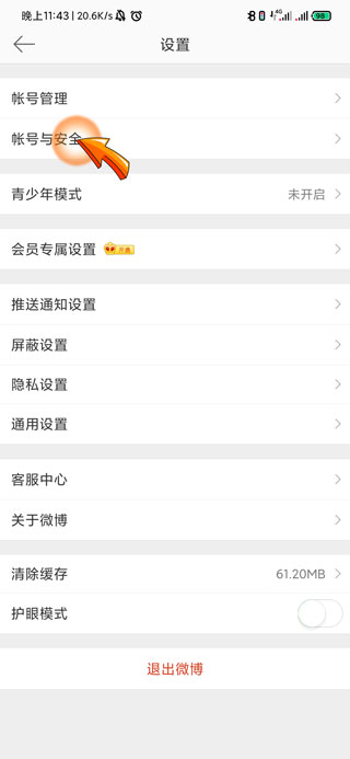 查看微博账号需要打开微博APP,点击页面右下角的“我”的图标,然后点击我的页面右上角的齿轮“设置”图标,再点击“账号与安全”选项,此时页面最上方的“微博昵称”右侧的文字即可微博账号。