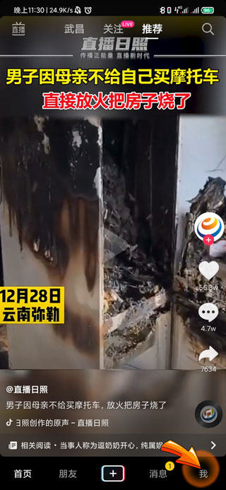 1、抖音更换头像首先需要打开抖音APP,点击右下角“我”的选项。