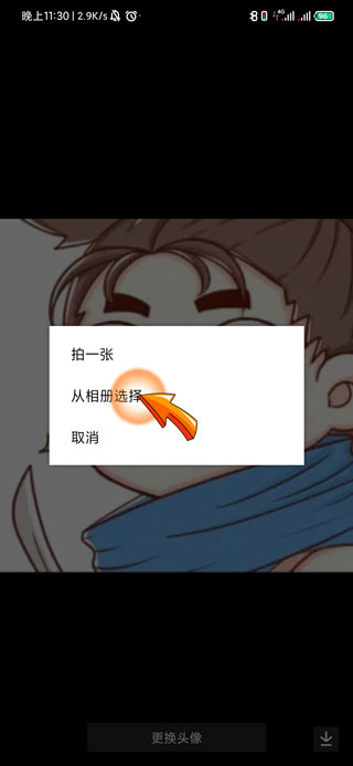 4、最后选择“从相册选择”或者“拍一张”进行更换头像。
