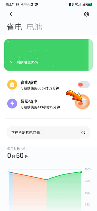 4、最后点击“超级省电”右侧的开关按钮即可。