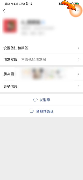 2、进入好友主页后,点击页面右上角的“三点”符号。