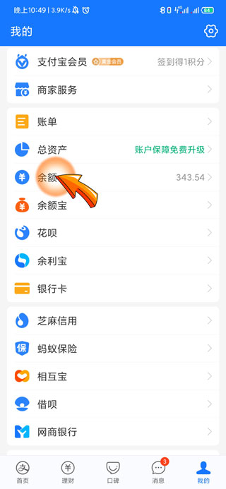 2、然后在我的页面中找到并点击“余额”选项。