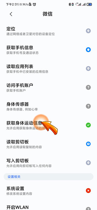 6、最后授权微信“获取身体运动信息”的权限,微信就可以记录步数了。