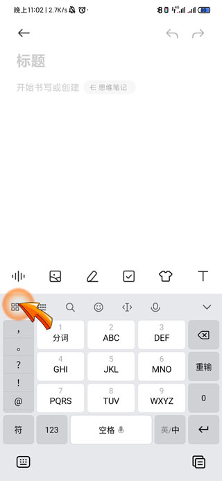 1、手机关闭打字声音首先需要打开打字框,点击打字框左上角的“四口”图标。