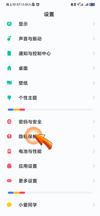 2、进入设置页面后,下滑找到“隐私保护”选项,点击进入。