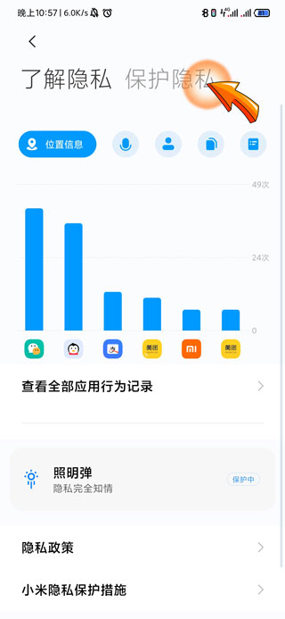 图库设置密码,先将手机桌面的“设置”选项打开,下滑找到“隐私保护”选项,然后点击页面上方的“保护隐私”选项,再点击左下角的“应用锁”图标,设置完密码后,在应用中找到“相册”选项,点击打开右侧的开关即可。