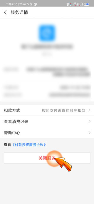 6、最后点击页面下方的“关闭服务”选项即可解除支付宝的微博会员自动续费。