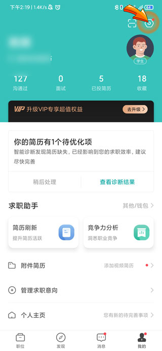 2、在我的页面右上方有一个“设置”齿轮图标,点击进入。
