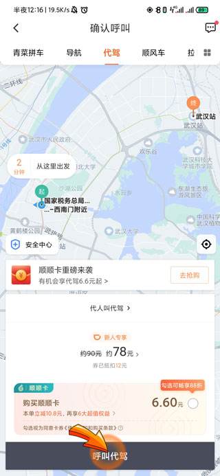 4、最后点击页面下方的“呼叫代驾”选项,耐性等待代驾人员到来即可。