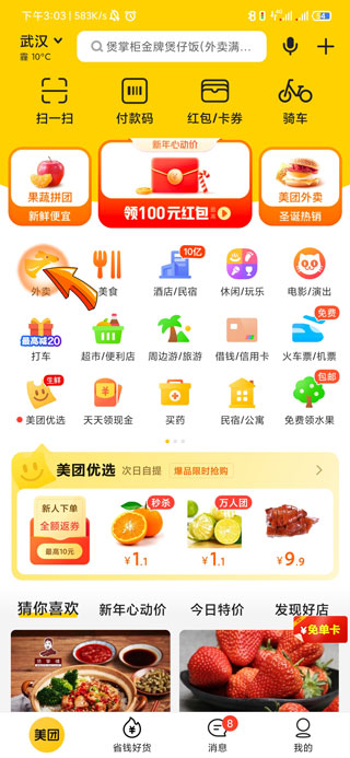 1、美团给外地朋友点外卖首先需要打开“美团”APP,点击“外卖”图标。