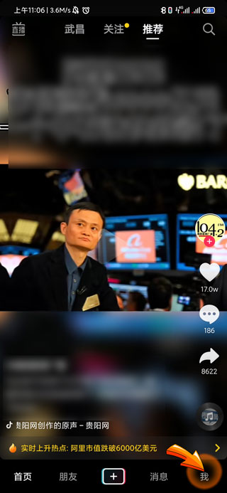 1、抖音上传3分钟以上长时间视频首先需要打开抖音APP,点击页面右下角的“我”的选项。