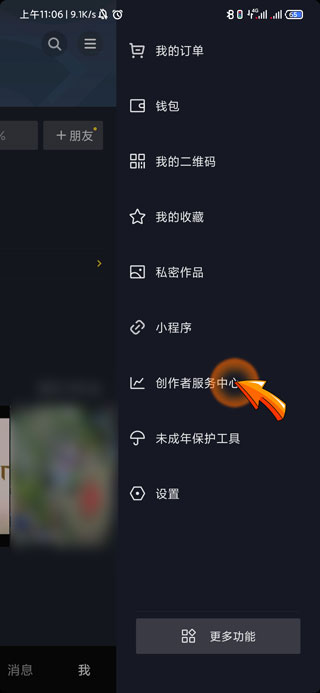 3、找到页面中的“创作者服务中心”选项,并点击进入。