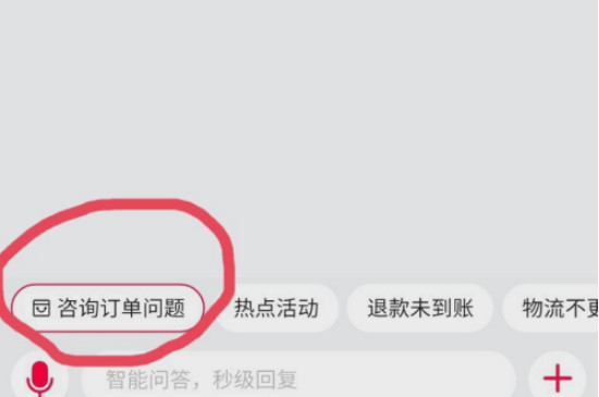 3、进入咨询页面,点击输入框上的咨询订单问题,进入已购买的订单。
