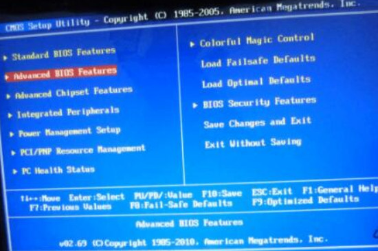 将u盘启动器插入电脑主机后按开机键,进入开机界面后长按DEL键进入BIOS主菜单界面。之后通过键盘上的方向键选择Advanced BIOS Features选项并按回车键,之后按照提示进行操作即可。