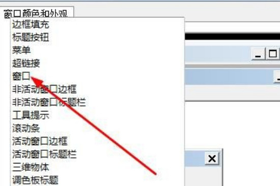 3、点击界面下方的“高级外观设置”选项后,再点击“项目”一栏并选择里面的“窗口”,最后点击“确定”,完成设置的保存后,电脑底部显示栏的颜色就更改完成了。