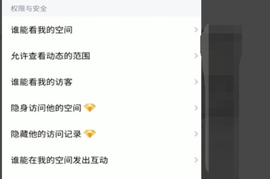 3、找到“权限与安全”这一栏,通过这里的选项设置空间权限。点击自己想要设置的栏目。进入选择即可。